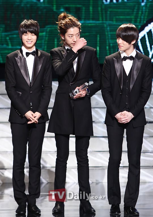 Sus compañeros de Cn.Blue Jong Hyung, Min Hyuk y Jun Shin acudieron por el premio en nombre de la pareja YongSeo ganadores del "Premio de popularidad" compartiendo el premio con la pareja "Khuntoria" (Kim GookJin y KimGura y Lee Kikwang y Simon D).
